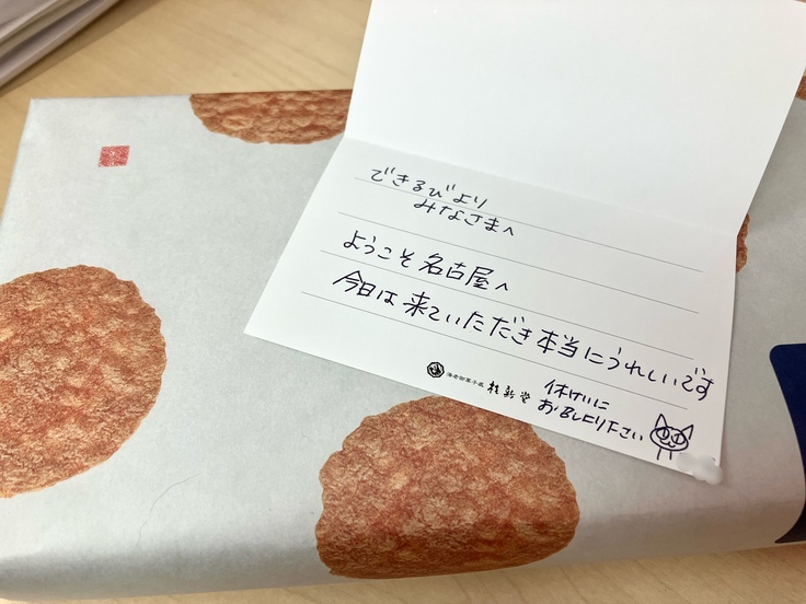 ご来場くださった方からお土産とメッセージをいただきました!こちらこそお越しいただきましてありがとうございました!!