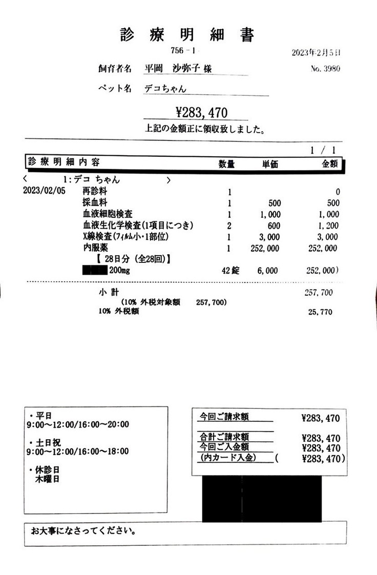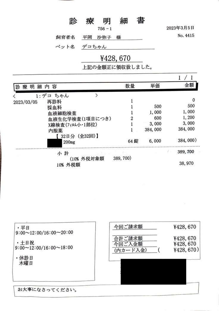 ▶︎ 4. 掲載している資料についてページ上に掲載している診断書や診療明細書などの資料は全て動物病院から掲載の許諾を得ております。