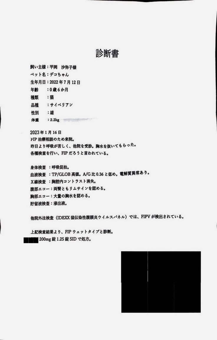 ※FIP(猫伝染性腹膜炎)は以後FIPとします。
