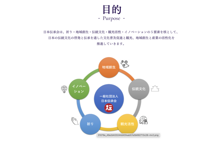一般社団法人日本伝承会は、神道や仏道という神仏習合に育まれ、古来より日本に根付いてきた歴史的·文化的価値を見据えたうえで保全、 後世に向けて日本の伝統を紡いでいくために2023年に発足いたしました。