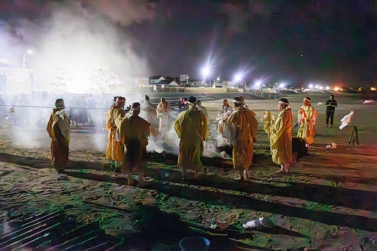 世界で活躍するアーティスト達がこの日に集い、稲佐の浜でパフォーマンスをし、柴燈護摩祈祷へと紡いでくれます。