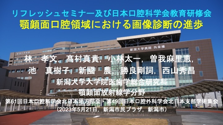 第61回日本口腔科学会北日本地方部会・第49回日本口腔外科学会北日本支部学術集会のリフレッシュセミナー・教育研修会(5月21日・新潟市民プラザ)で口腔内エコーの最新情報について講演しました。本プロジェクトへのご支援につきお礼申し上げるとともに、口腔内エコーを是非口腔外科の先生ご自身で使っていただけるよう、お話しさせていただきました。