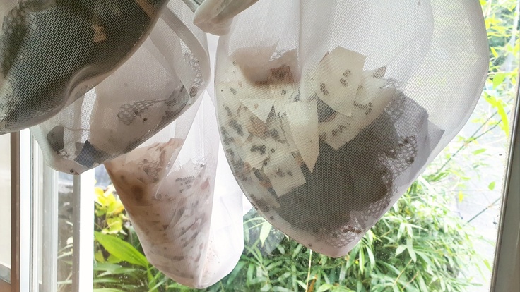 7000個以上の卵を獲得することができました。最低50%の孵化率を目指していますので、着物一着(縦糸のみ)と予備のサンプル用として3500の内、2000個を活用する予定です。