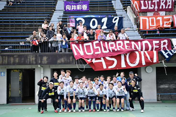 掲げていた「なでしこリーグ1部昇格」には届かず、悔しい思いもありますが、最終節の大和シルフィード戦では、終了間際に逆転勝利を収め、自分たちの力で2部残留を掴み取ることができました。