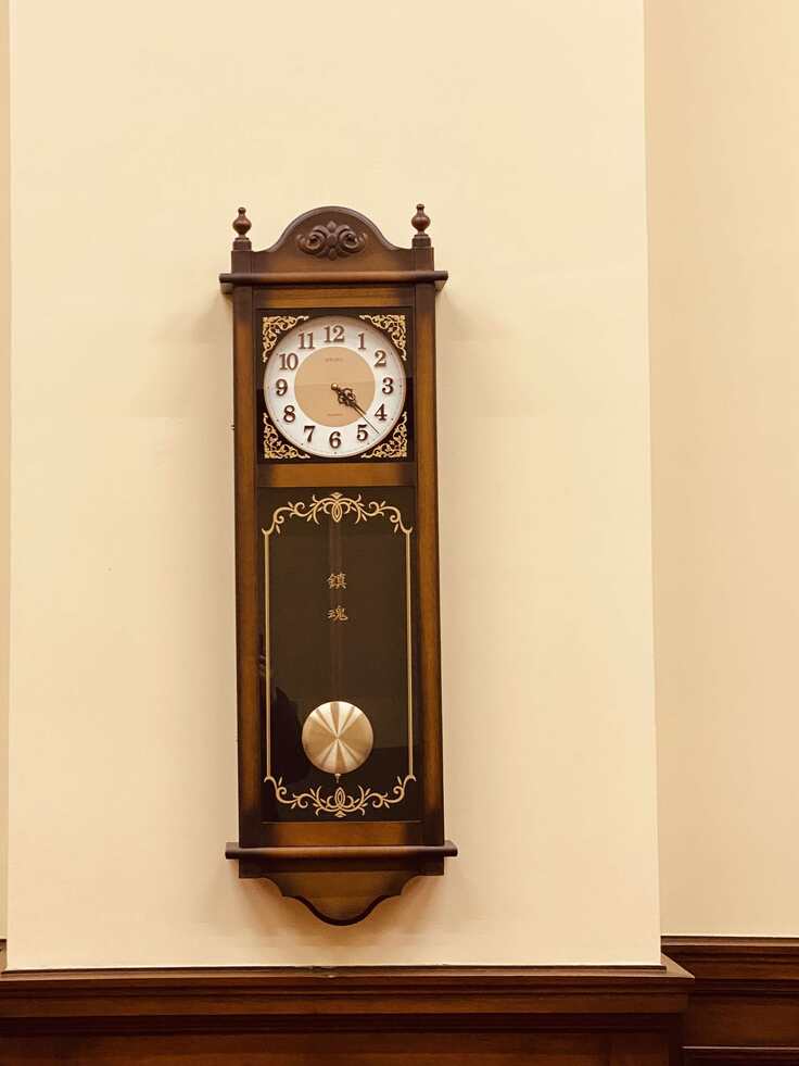 支店長室には、吉川智慧丸支店長の三男でいらっしゃる、吉川清さんが贈った掛け時計が。