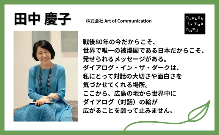 続いて、株式会社 Art of Communicationの田中慶子様より届いたメッセージをご紹介いたします。