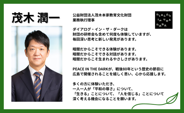 PEACE IN THE DARKが、戦後80年という歴史の節目に広島で開催されることを嬉しく思い、心から応援します。