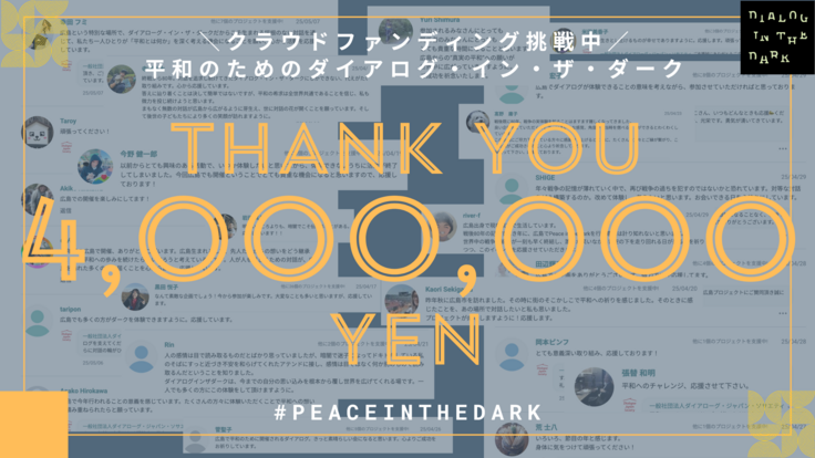 【感謝!】PEACE IN THE DARKのご支援額が400万円を超えました!
