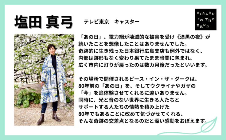 その場所で開催されるピース・イン・ザ・ダークは、80年前の「あの日」を、そしてウクライナやガザの「今」を追体験させてくれるに違いありません。