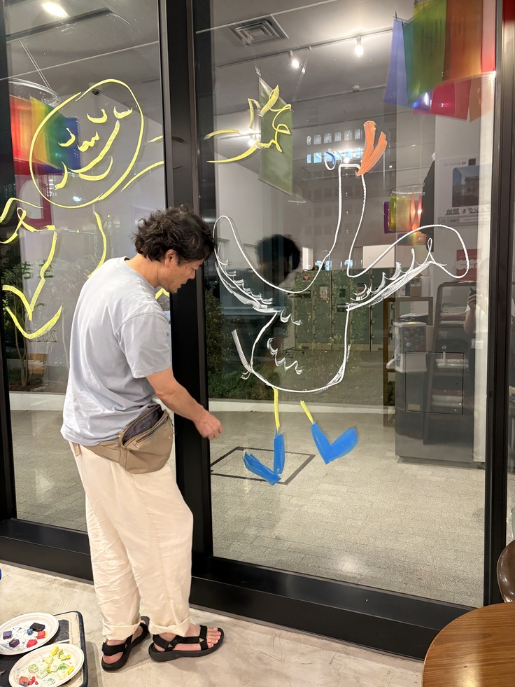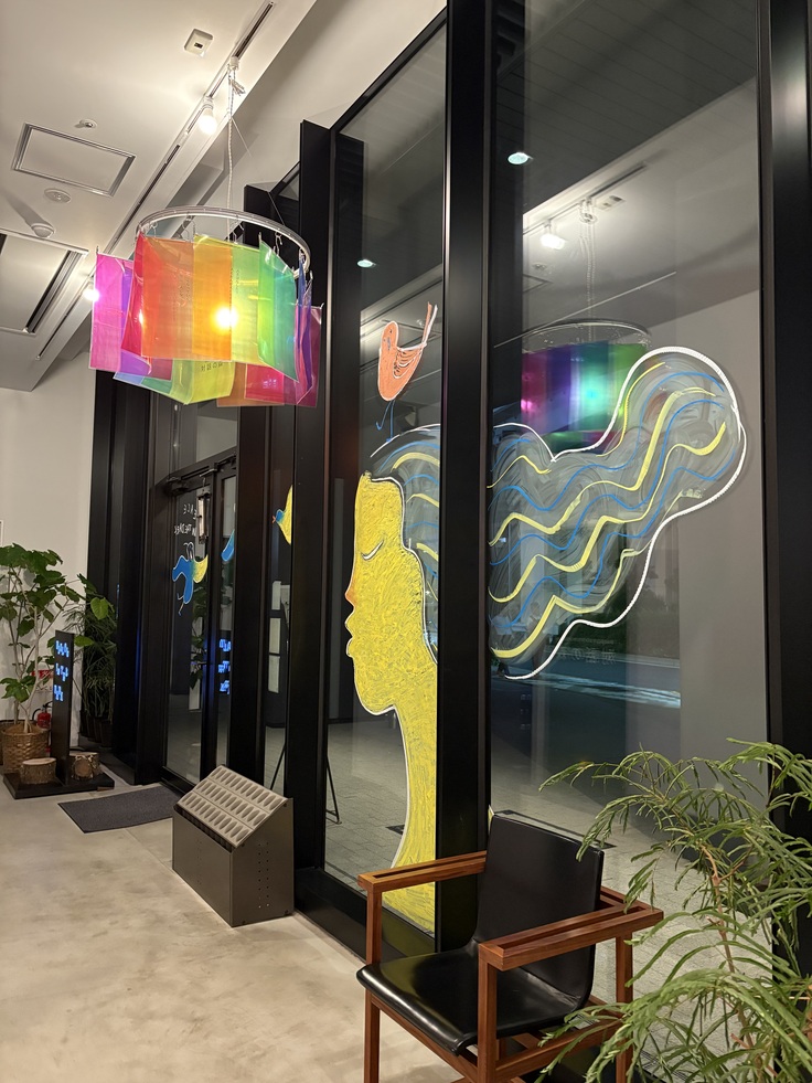 普段はただの透明ガラスの扉が現在、カラフルで温かいイラストで溢れているのです。