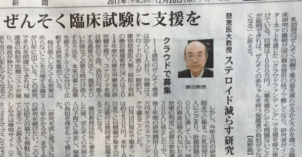 DIFTOスタディ、そしてクラウドファンディングを通した募金について毎日新聞が取り上げ、昨日の夕刊に掲載してくださいました。