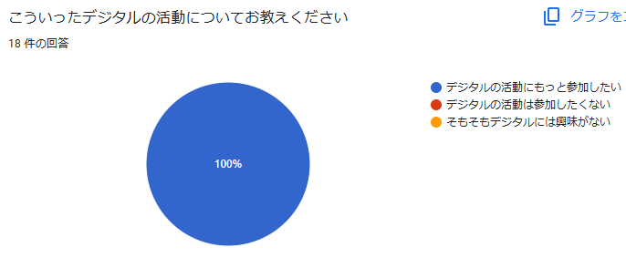 本プロジェクトへの不登校児童の参加者は18名でした。効果測定では参加者全員がこのデジタルの取組に対して、もっと参加したいというフィードバックを得ております。