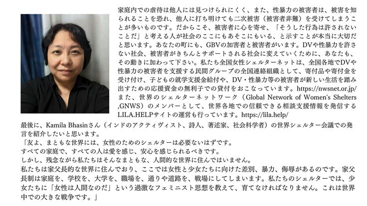 NPO法人全国女性シェルターネット 共同代表 北仲 千里 様より応援メッセージをいただきました!