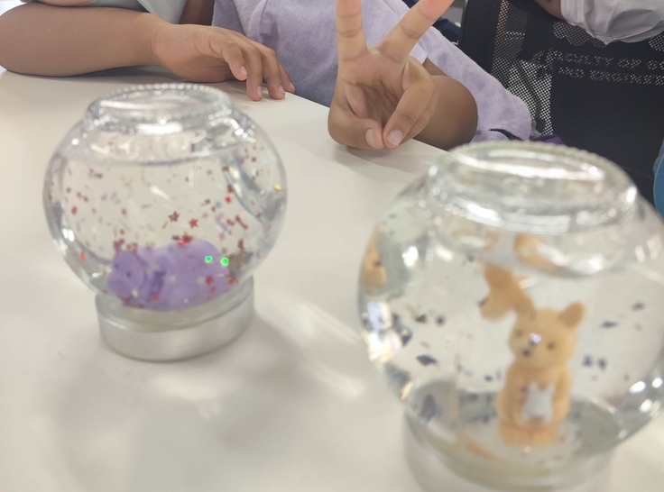 ↑スノードームづくり(都市鉱山=電子機器の基板から取り出した金を使ったスノードーム)