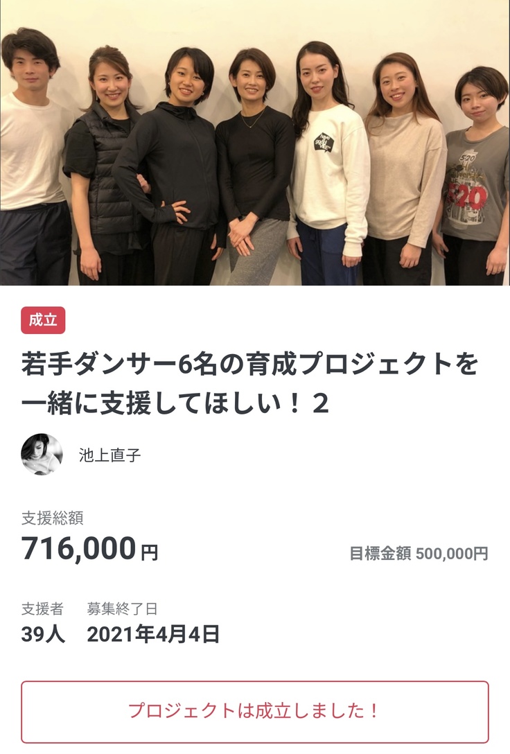 若手ダンサーの育成プロジェクトとしてクラウドファンディングを実施します。
