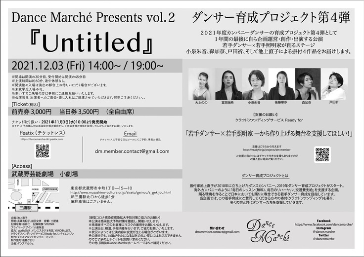 2021年度カンパニーダンサーのダンサー育成プロジェクト第4弾として、1年間の最後に自ら企 画運営・創作・出演する公演『Untitled』
