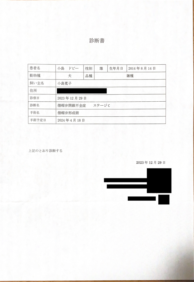 【僧帽弁閉鎖不全症】の手術(僧帽弁形成術)、およびそれに係わる治療費のご支援をお願いしたいです。