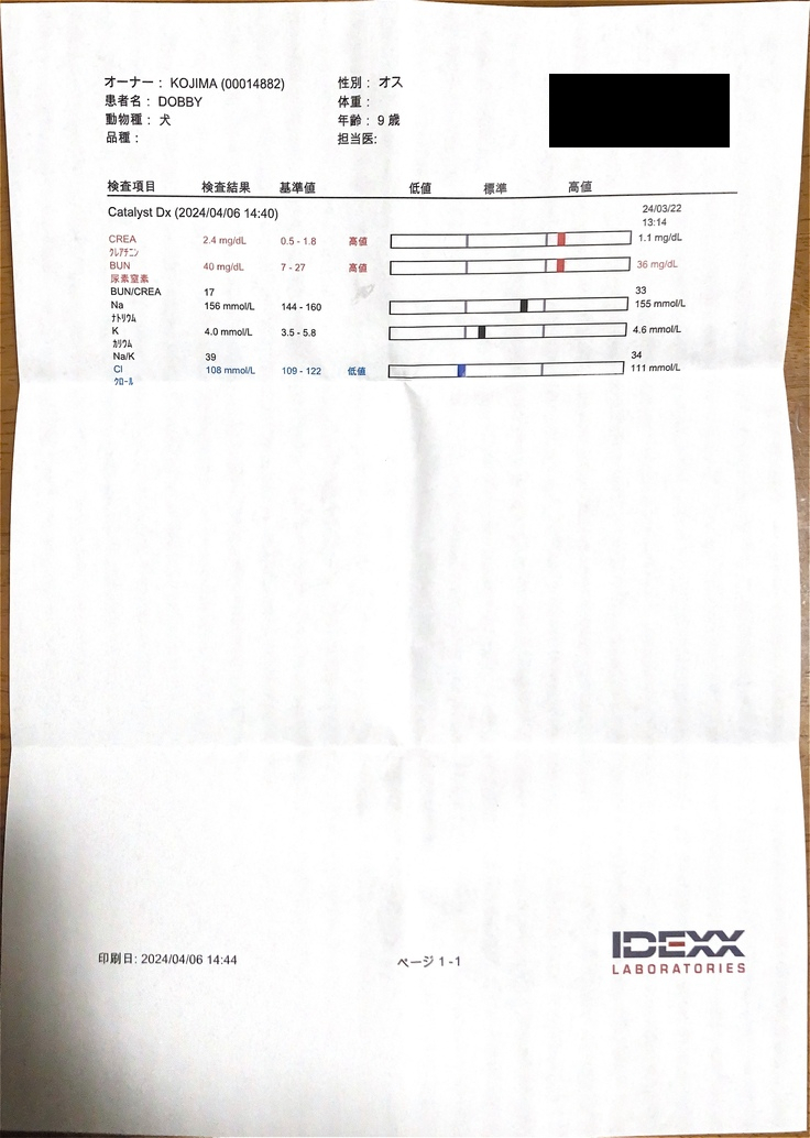 腎臓の数値が相変わらず悪く、来週12日には術前検査なのですが