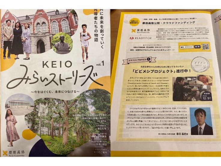 どどメシプロジェクトに興味を持っていただき、ありがとうございます。この度、KEIOみらいストーリーズで本プロジェクトのクラウドファンディングを取り上げてもらいました。こちらをご覧になった方々からもご支援いただけています!これは慶應義塾基金室が作成している冊子になります。