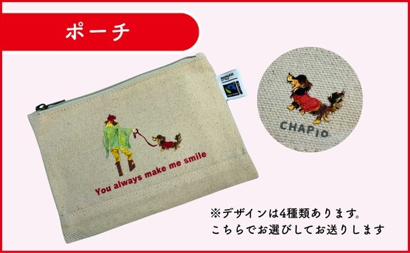 まるで今にも飛び出してきそうな生き生きとしたわんこの絵を描かれているチャッピーママさんが、DOG DUCAのために用意してくださった、オリジナルポーチです。デザインは4種類からこちらでお選びしてお送りいたします!