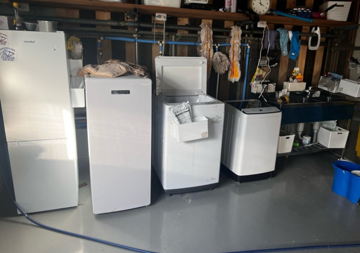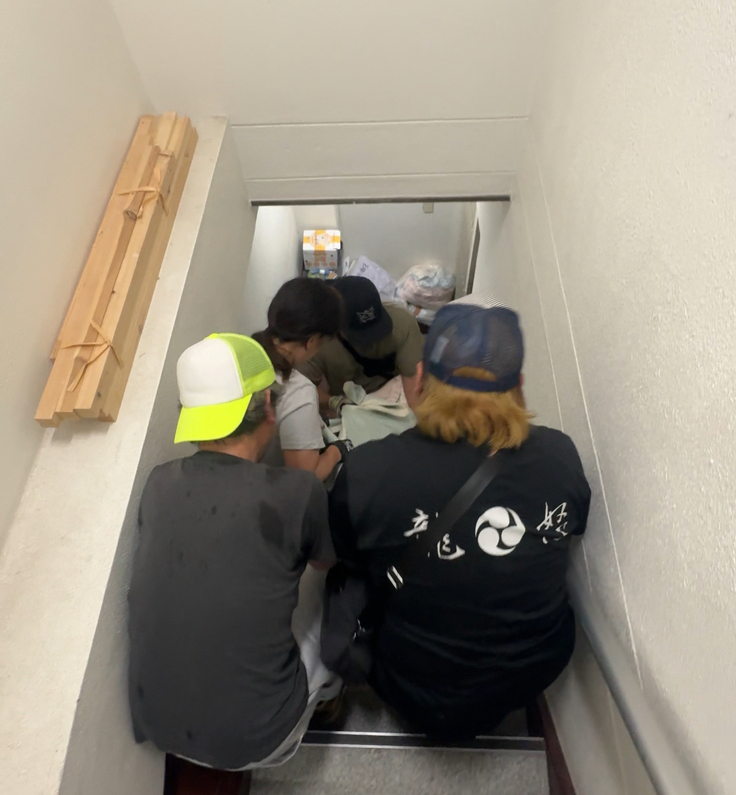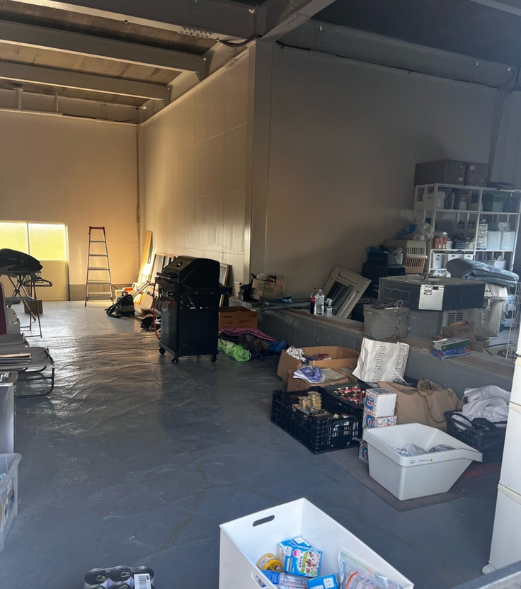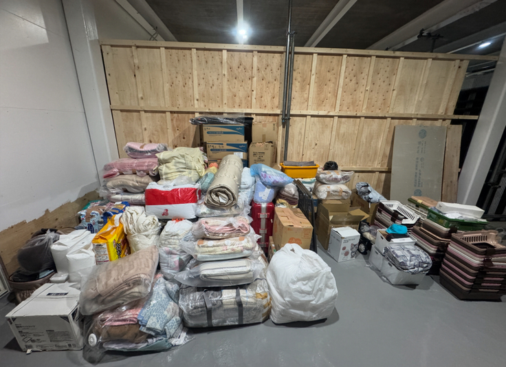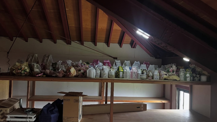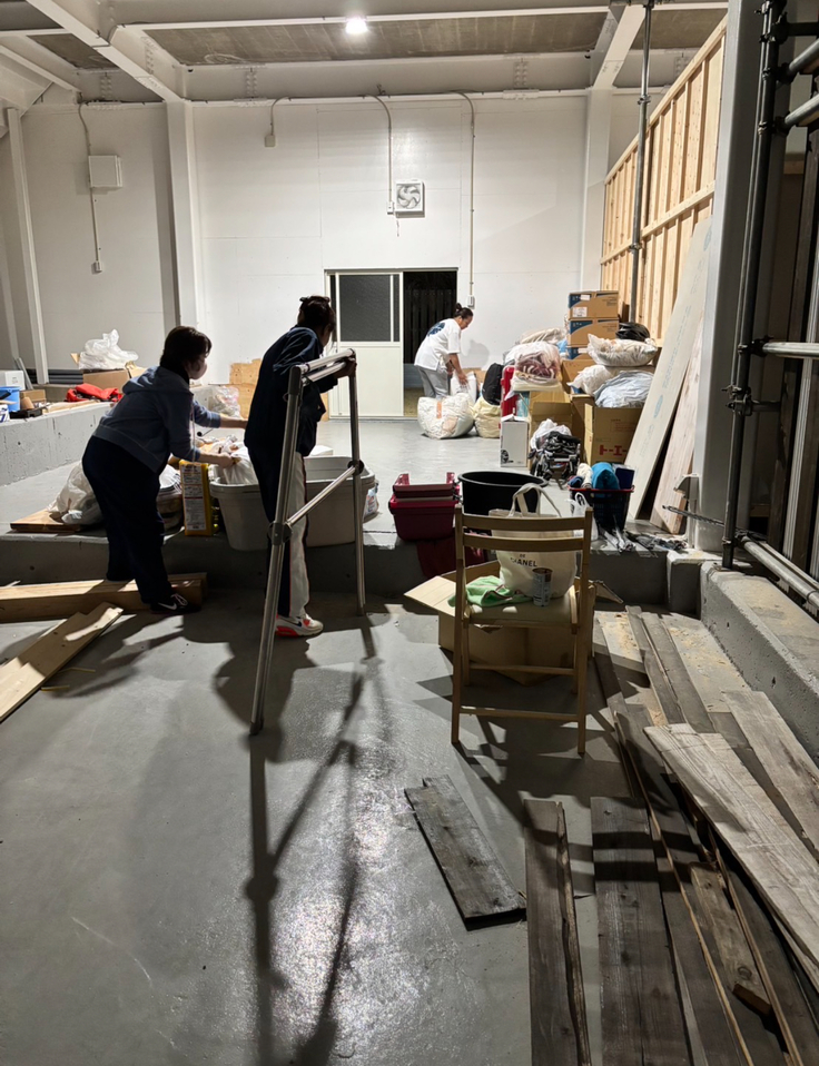 今は皆様から送って頂いた支援物資の置き場にさせていただいてます