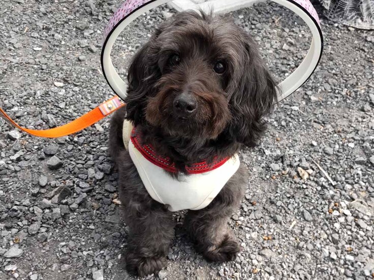 歩けるのがうれしい失明犬の光ドッグバンパー製作費の継続支援をぜひ!