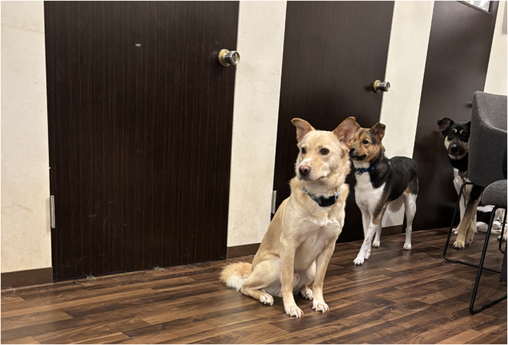 始めは、遠くから見守っていたワンちゃんたちも、時間が経つにつれて、少しずつ私たちのほうに近づいてきてくれました。