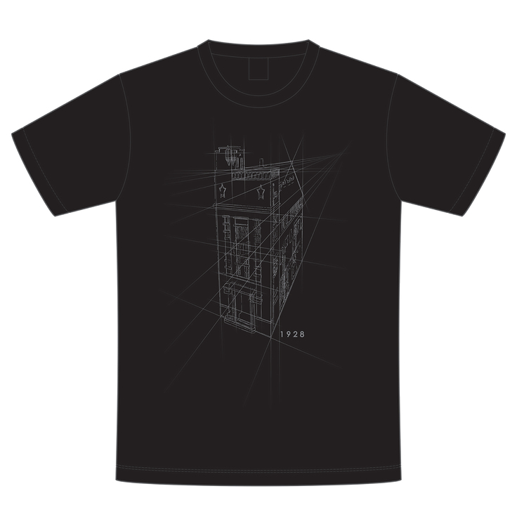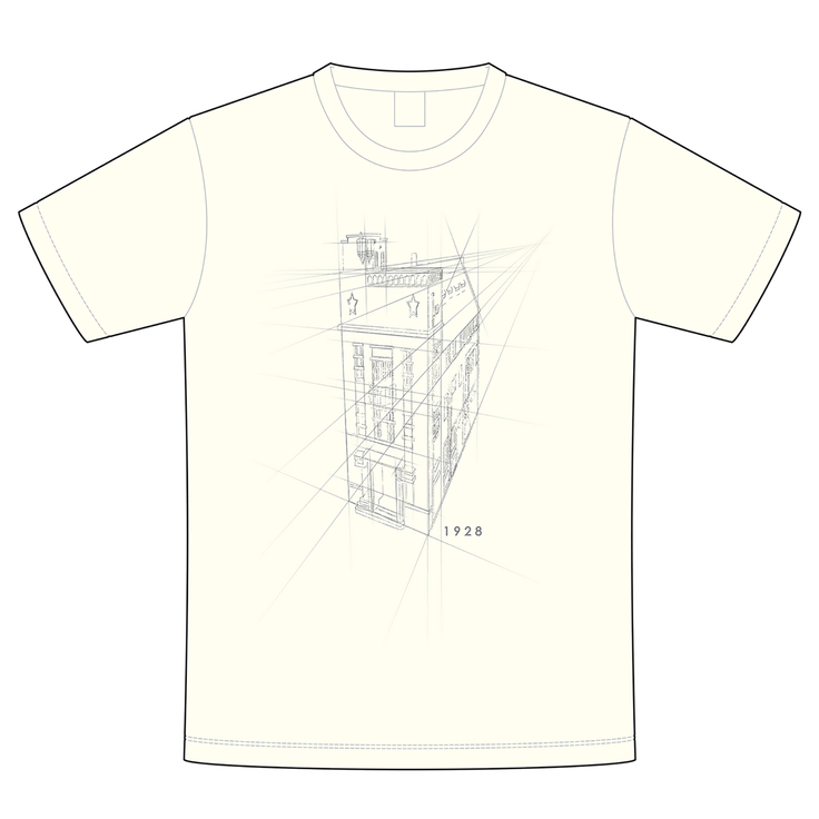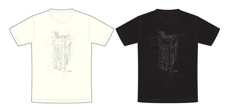 1928ビルのイラストに透視図の線を組み合わせたようなデザインとなっています。「1928」の文字は、実際にビル正面に表記されているフォントから引用しております。