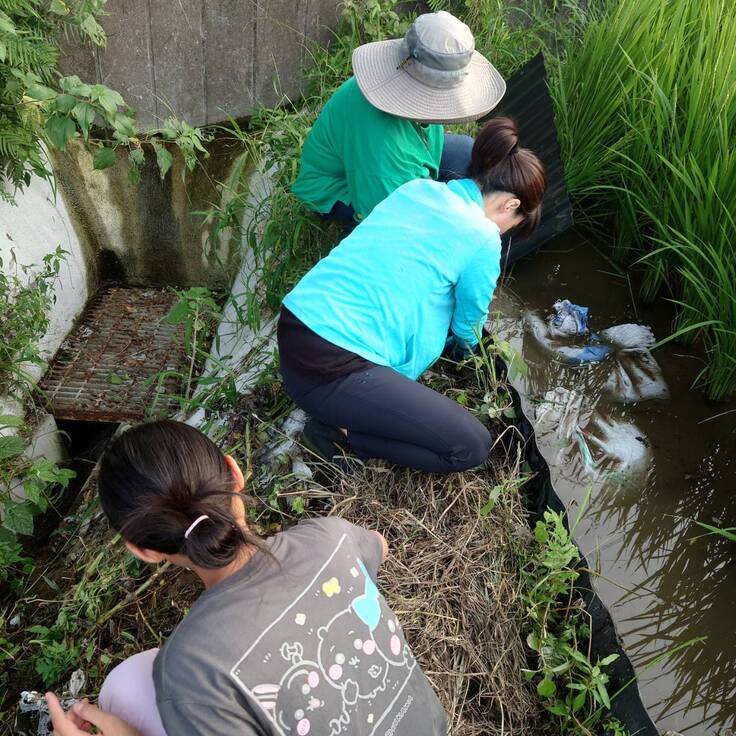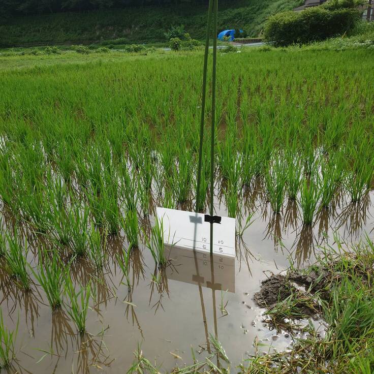 お米作りの指導者の先生に助言をもらいながら水位の調整しています。