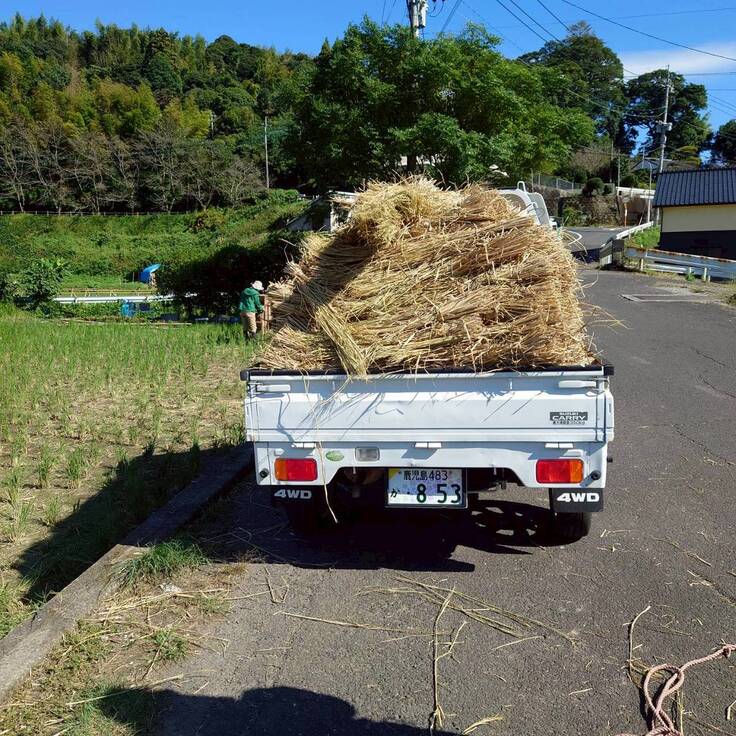 脱穀後の藁は一部は農家の方に買い取っていただき、牛のご飯に。