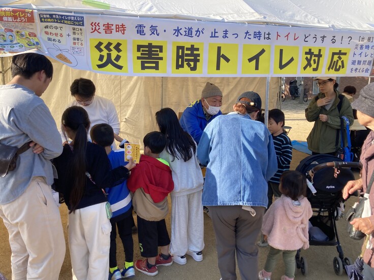 【写真】災害時のトイレ対策のブースも大盛況でした。無料で携帯トイレの配布もして頂きました。