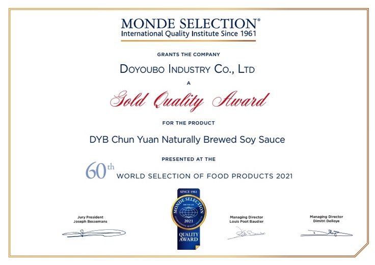 2018年から2021年にかけて、「豆油伯」の自家製醤油シリーズである「金桂」「金梅」「金梅萬」「春源」は、世界4大食品賞である「Great Taste Awards」「Monde