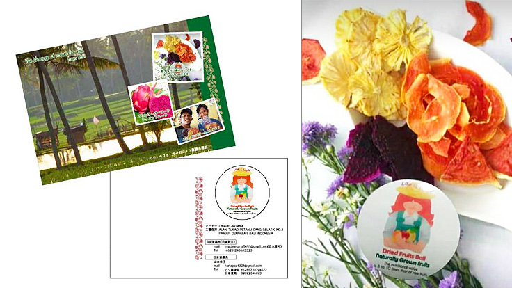 バリ島で販売しているドライフルーツは、お陰様で皆様から大変好評でした。日本の皆様にも自信を持っておすすめすることができます。 私のできることは、まず愛情たっぷりに育てたバリ島のフルーツを美味しいドライフルーツにして、日本の方にお届けすること。