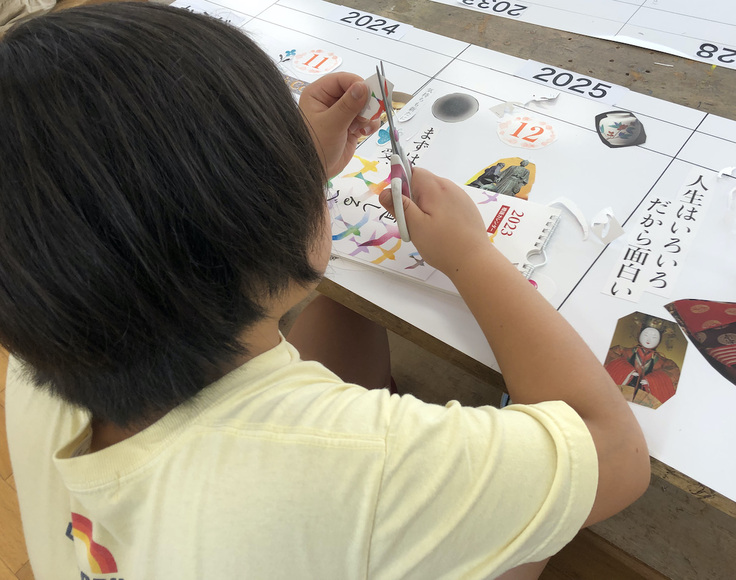 切り抜いた写真や文字を時系列に並び替えていく作業は脳の想像力を100%フル回転させます。子どもたちの脳の中では、「夢」を体験したような不思議な感覚で満たされています。