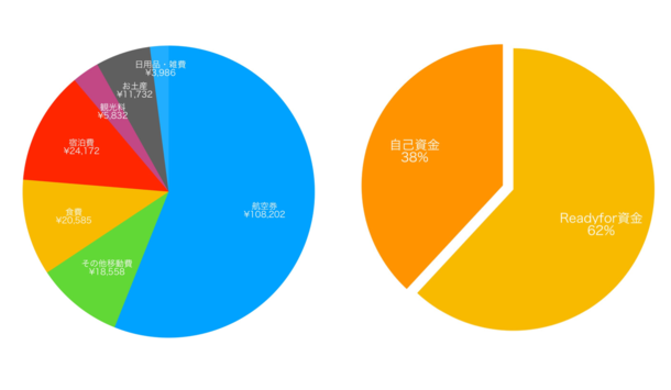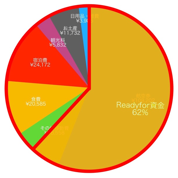 Readyforの資金では、航空券及び、その他移動費の一部として、