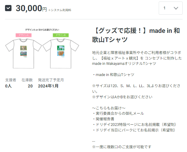 【グッズで応援!】made in 和歌山Tシャツ 30,000円