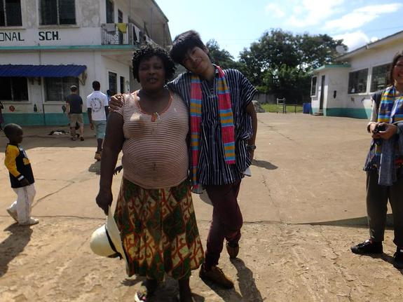 (首からかけているのは、「ケンペ」よばれるものでガーナで祝福の時につける装身具で、孤児院のスタッフたちから頂きました)