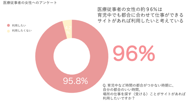 その頃、周囲の同業の友人からも復職に悩む声を多く聞いたこともあり、育児中の専門職の女性でも両立しやすい仕事が探せるサイトをつくりたいと思い、立ち上げを決意しました。