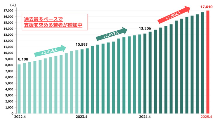 この1年で+3,804人もの若者が新たに登録し、SOSを発しています。