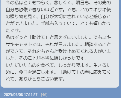 先日、ユキサキチャットに届いた相談者さんからのメッセージをご紹介します。
