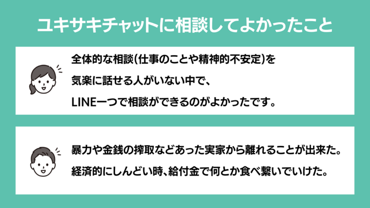 ユキサキチャットには、日々多くの若者から「助けて」と声を上げにくい状況の相談が寄せられています。