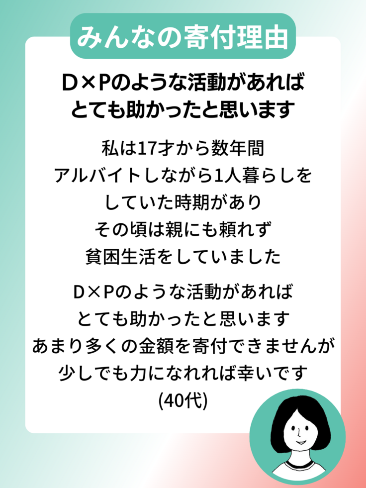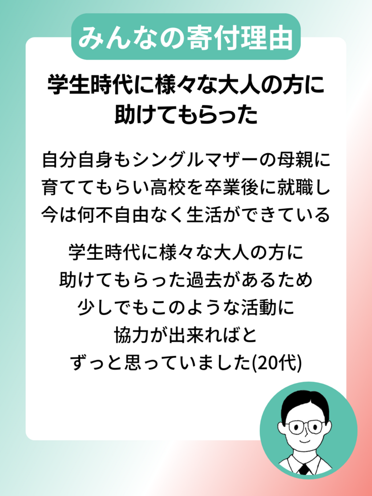 その中には、自身の過去の経験が寄付のきっかけになったと話す方もいます。
