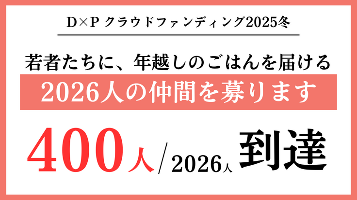 D×Pでは、孤立と困窮を深める若者にとって2026年が希望ある1年になるよう、ともにあたたかい年越しを迎える「2026人の仲間」を募っています。
