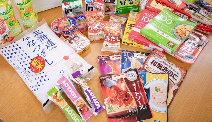 届ける食品は、パスタやパスタソース、レトルトのカレー、缶詰、お米など。