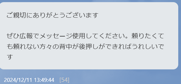 支援を必要としている方にとって、誰かに頼ることは簡単なことではありません。だからこそ、こうしたメッセージを発信することで、少しでも「頼ってみよう」と思えるきっかけになればと願っています。