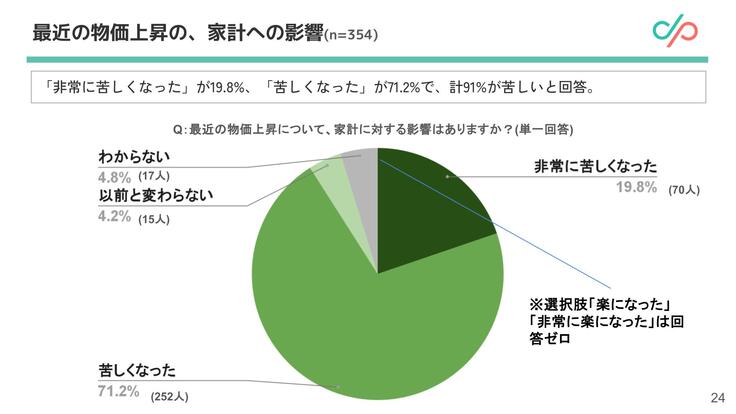「非常に苦しくなった」が19.8%、「苦しくなった」が71.2%で、計91%が苦しいと回答。