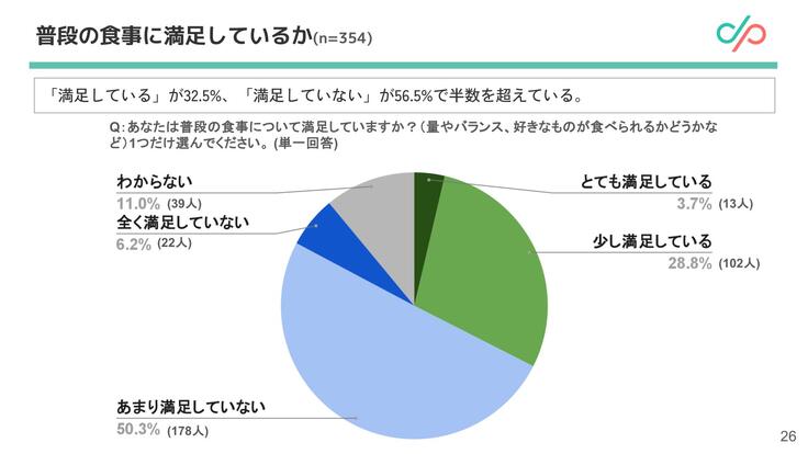 ✅ 食事の満足具合:56.5%が「普段の食事に満足していない」
