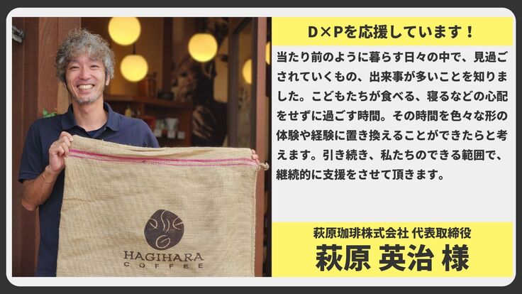萩原珈琲株式会社 代表取締役 萩原英治様から応援メッセージが届きました。ありがとうございます!