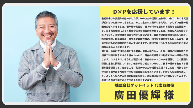 【応援メッセージ】株式会社ゲットイット 代表取締役 廣田優輝様