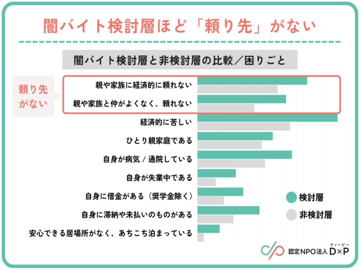 さらに今回の調査では、「闇バイトを検討する若者」と「検討しない若者」との間に大きな差があることがわかりました。